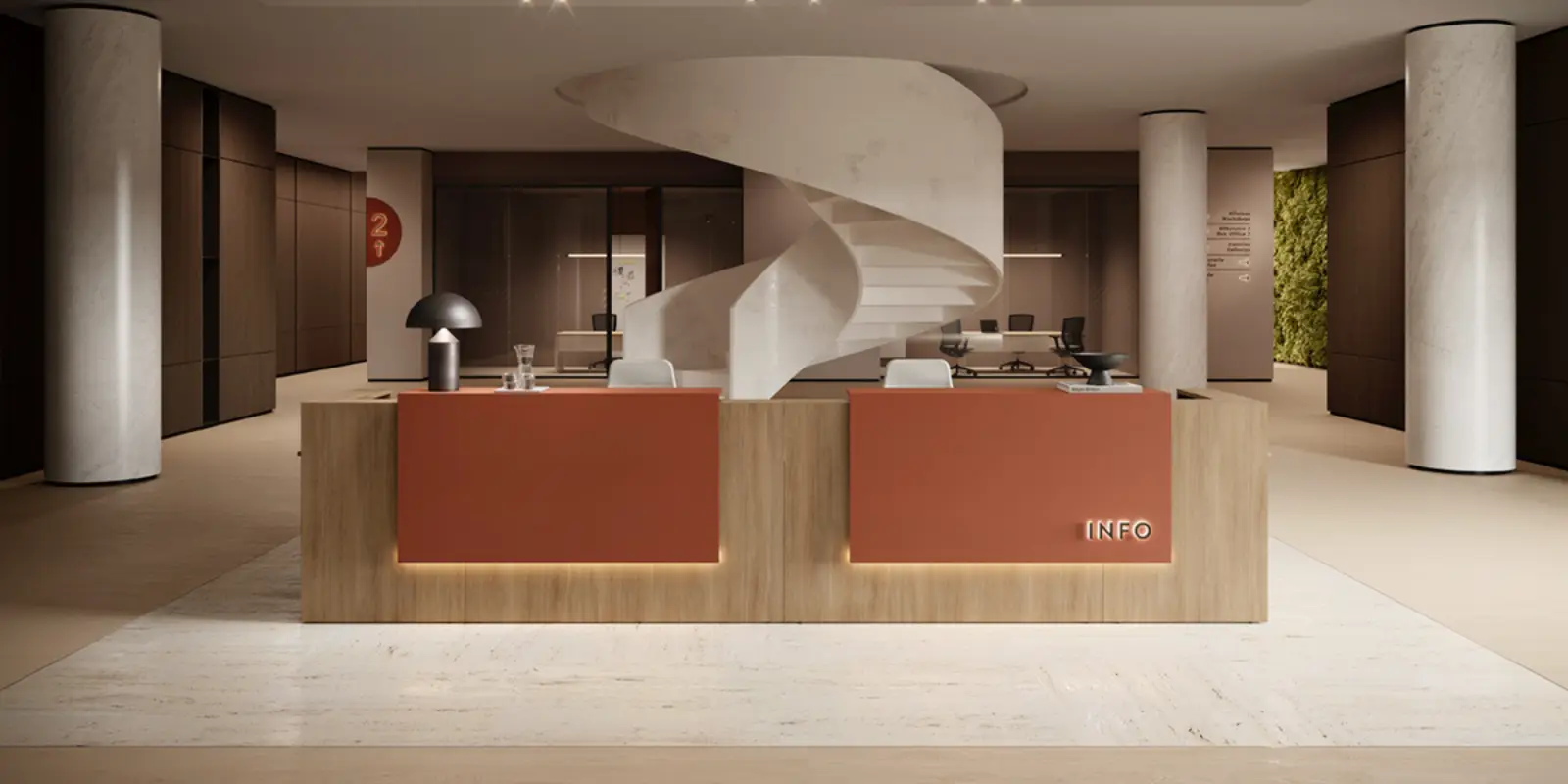 Idéal pour les zones d’accueil et les comptoirs, ÁTRIO combine praticité et design contemporain grâce à ses options intégrées de gestion des câbles et la possibilité d’ajouter un éclairage LED.